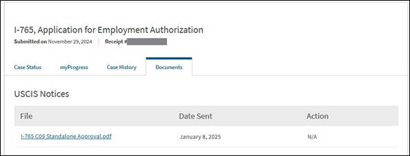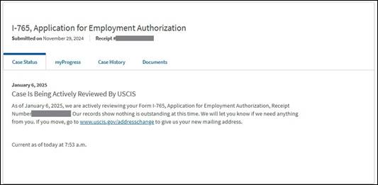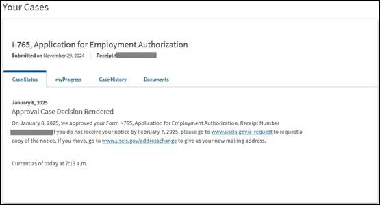 January 8, 2025 – Day 42 – Approval of I-765 (Work Employment Authorization)
