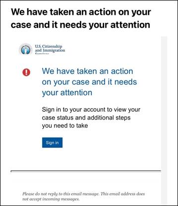 An email received notifying us that there’s an action taken with our case. By logging in to the website, you will know what the email was all about. In this case, there’s an update on biometrics scheduled.